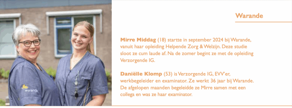 De eerste werkdag – we kennen ‘m allemaal. Voor ervaren zorgprofessionals misschien een vage herinnering, voor nieuwkomers nog vers in het geheugen. Maar hoe ontwikkel je je vanaf die eerste dag? Wat is de rol van je begeleider, collega’s en de organisatie in het leerproces? En wie staat er naast je op moeilijke momenten? REIN ging in gesprek met leerling en werkbegeleider van Warande om te ontdekken hoe leren, groeien en veerkracht er in de praktijk uitzien in de ouderenzorg.